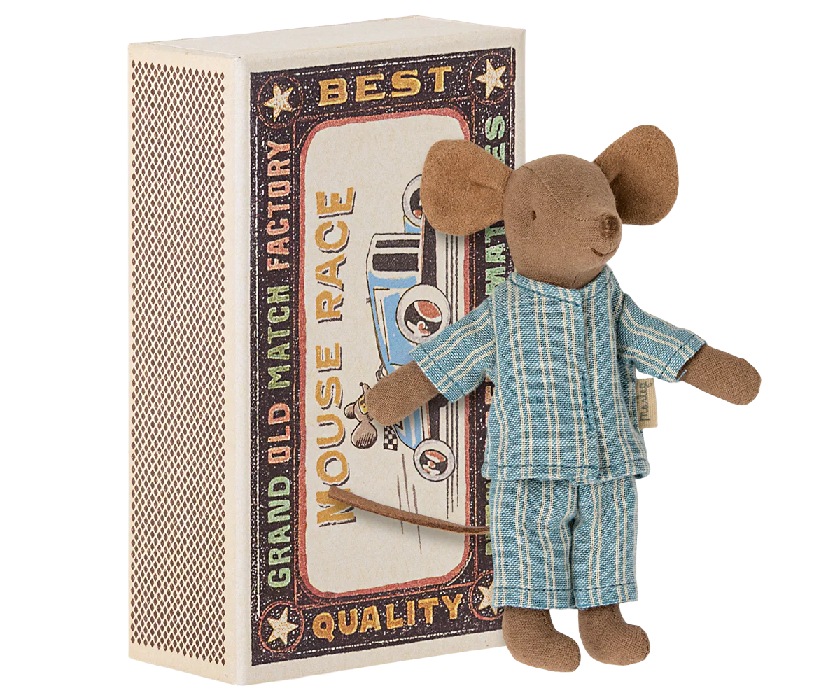 A classic Maileg item. This mouse is ready for hours of play and sleeps tight in the matchbox. The clothes and bed linen come in unique prints and beautiful colours.
