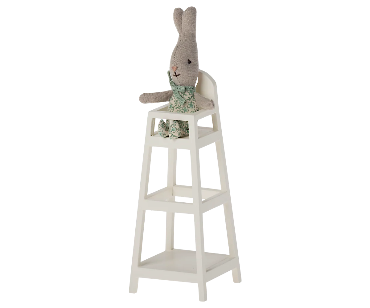A classic Maileg accessory. This high chair is a must-have for all families with babies so the small one can participate in the meals. It fits rabbits size MY and baby mice.