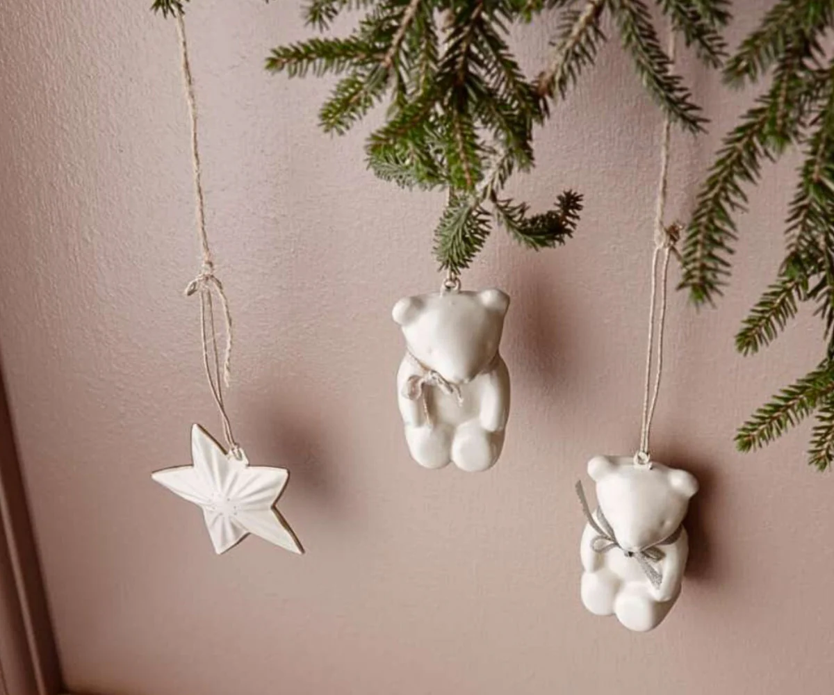 Metal ornament, Teddy bear - Off white/Rose—